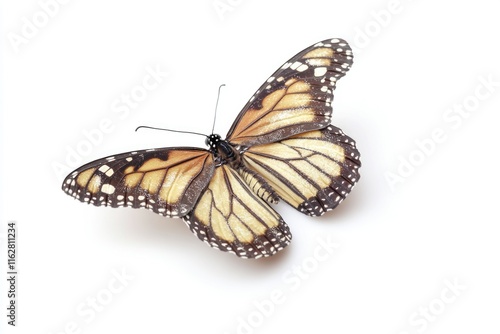 Fototapeta premium Close-up shot of a colorful butterfly perched on a white surface