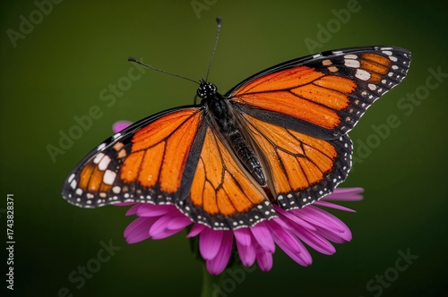Fototapeta premium Close-up Shot of a Monarch Butterfly with Orange, White, and Black Wings on a...