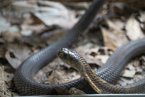 Fototapeta premium close up shot of a royal cobra (Ophiophagus hannah) repting on he desert arid ground