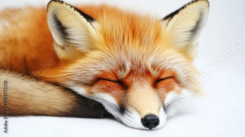 © AImmersive Imagery, Fototapeta premium Close up shot of a sleeping red fox captured against a white background