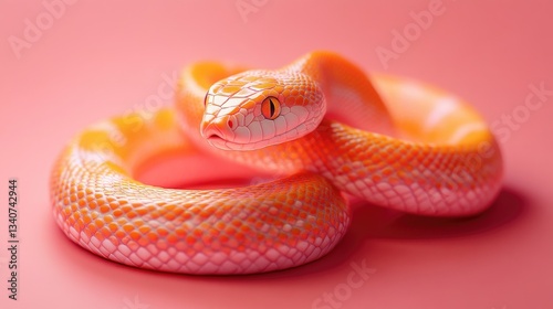© Ева Поликарпова, Obraz premium Close-up shot of a snake's head on a pink surface