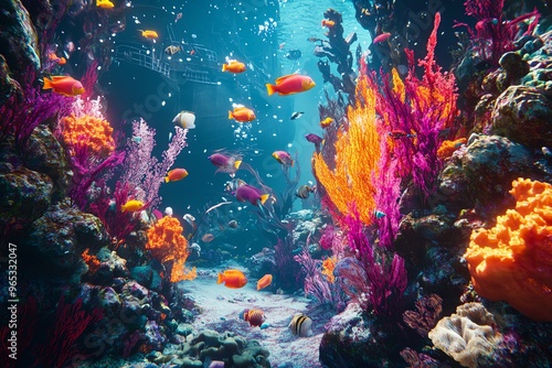 © Puchong, Naklejka premium Close-up shot of a vibrant underwater realm