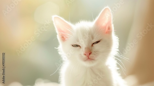 © AlfaSmart, Obraz premium Close-up shot of a white kitten winking at the camera