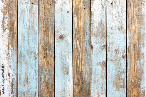 Naklejka premium Close-up shot of a wooden wall with flaking paint, suitable for use in old...