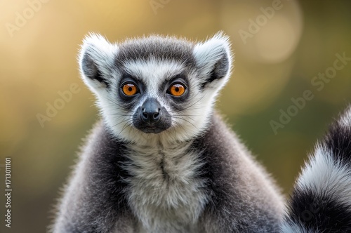 © TheWaterMeloonProjec, Obraz premium Close-up shot of an adorable ring-tailed lemur against a softly blurred backdrop with room for text.