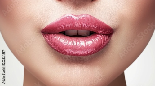 Obraz premium Close-up Shot of Beautiful Female Lips with Perfect Makeup and Lip Gloss