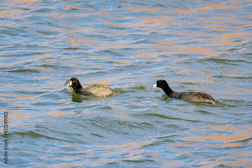© Kit Leong, Fototapeta premium Close up shot of common coot swimming