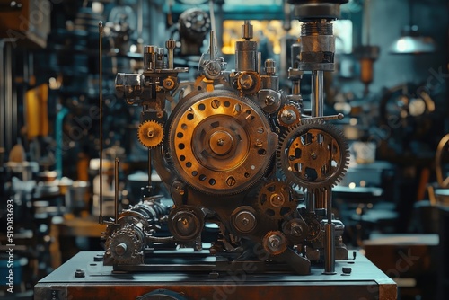 Fototapeta premium Close-up shot of complex machinery. This image is great for projects related...