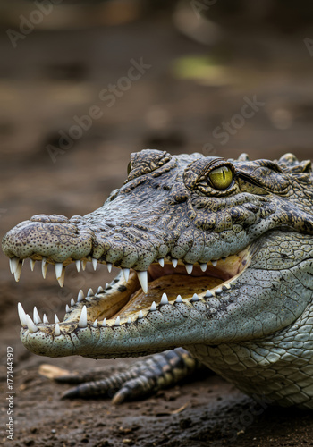 Obraz premium Close up shot of crocodile with sharp teeth