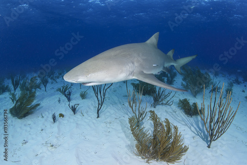 © Martin, Naklejka premium Close-up Shot of Lemon Shark Swimming in Clear Waters of Bahamas