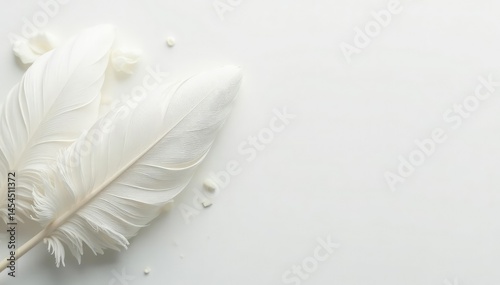 © Phetthanousack, Obraz premium Close-up shot of pristine white feathers on white backdrop, pure, abstract, beauty