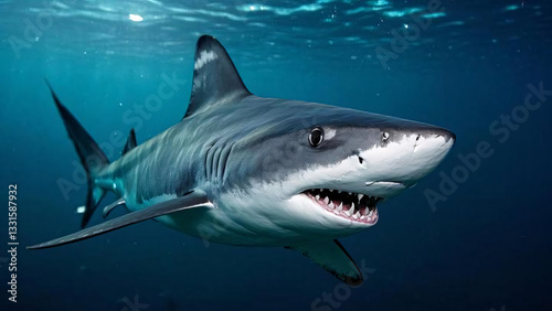 © Ridwan, Fototapeta premium Close up shot of shark underwater with blurry background
