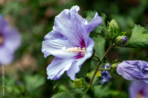 Fototapeta premium Close up shot of violet colored hibiscus syriacus flower