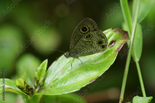 © Kit Leong, Obraz premium Close up shot of Ypthima huebneri butterfly