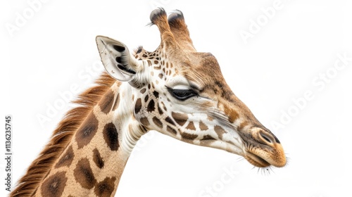 Naklejka premium Close Up Side Profile of a Giraffe Head Against White Background