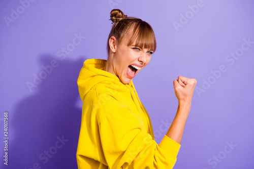 © deagreez, Fototapeta premium Close up side profile photo of amazing beautiful brunette she he
