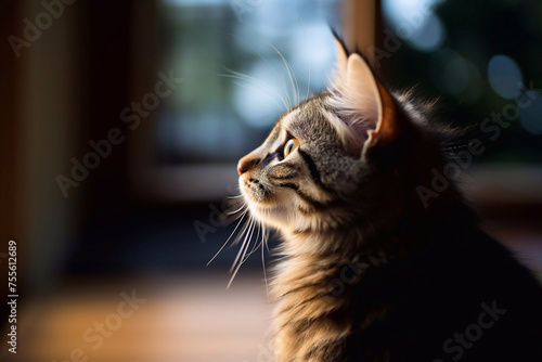 Naklejka premium Close-up side view of a kitten on a blurred background