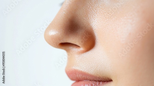 © Iswanto, Obraz premium Close-up side view of a woman's nose with smooth skin and a hint of a smile.