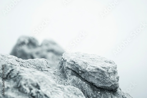 © BWS Stock, Fototapeta premium Close-up Stone Formation Displaying Rough Texture Against Soft Gray Backdrop