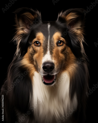 © Balica, Fototapeta premium Close up studio portrait one beautiful collie dog, looking in camera isolated on black background.