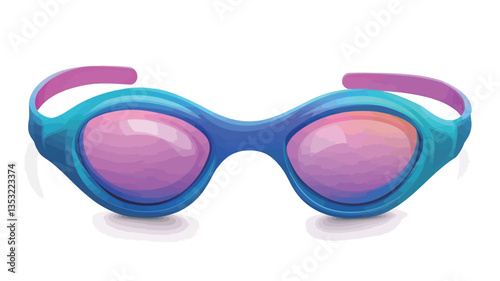 Fototapeta premium Close-up studio shot of a pair of swimming goggles. The goggles are predominantly blue with pink lenses and pink accents on the head strap. The lenses show a subtle reflection. The image is