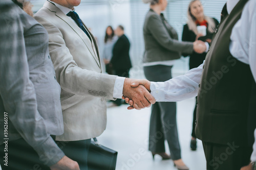 Fototapeta premium close up. successful businessman shaking hands with his business colleague.