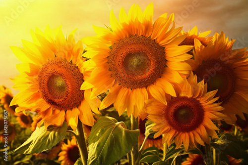 © Creative Clicks, Obraz premium Close-up sunflowers in a field at sunset