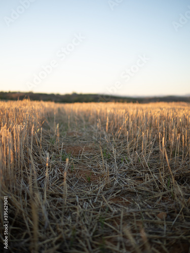 Obraz premium Close-up sunset photo of freshly mowed cereal fields