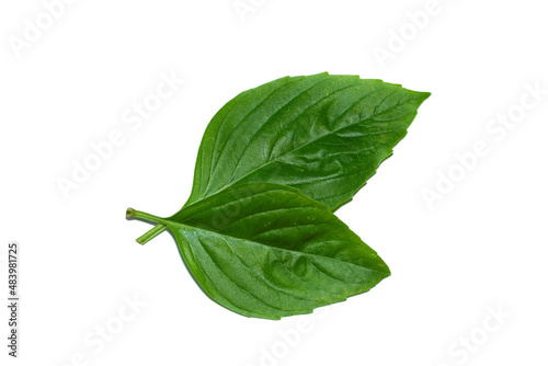 © noppharat, Obraz premium Close up Sweet Basil leaf on white background.