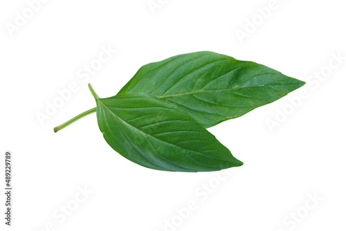 © noppharat, Obraz premium Close up Sweet Basil leaf on white background.