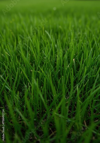 Obraz premium Close up texture of vibrant green lawn grass growing from nutrient rich dark...