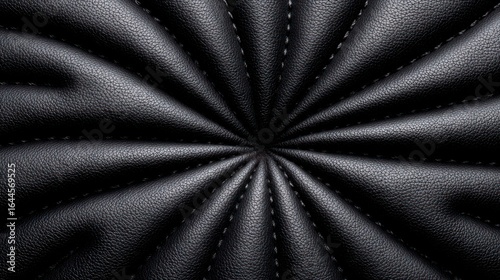 Obraz premium Close up textured black leather upholstery with stitched quilting radiating from the center