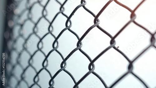 Fototapeta premium Close-up textured chain link fence on stark white, barrier, material