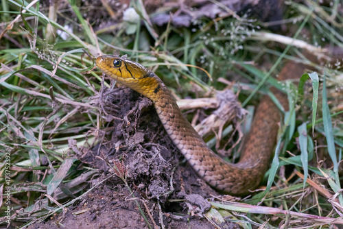 © iamporpla, Fototapeta premium close up the head of a snake on grass