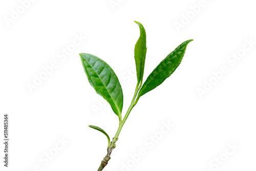 Fototapeta premium Close-up, the tip of a green tea leaf in the morning, tea plantation, on a white background.