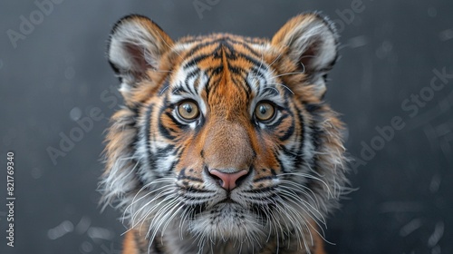 © Olga, Fototapeta premium Close-up tiger face on black background with water droplets on fur