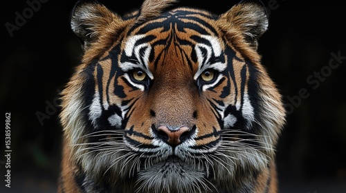 © bejopayon, Fototapeta premium Close-up Tiger Portrait Against Dark Background
