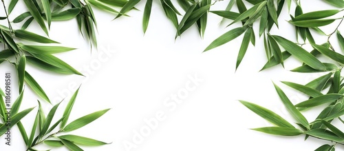 Naklejka premium Close up top view of bamboo leaves isolated against a white background A green leaf pattern texture with a clipping path and copyspace