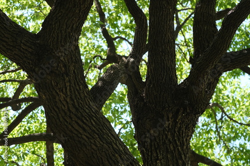 Obraz premium close up tree branches with lush green leaves on sunny day