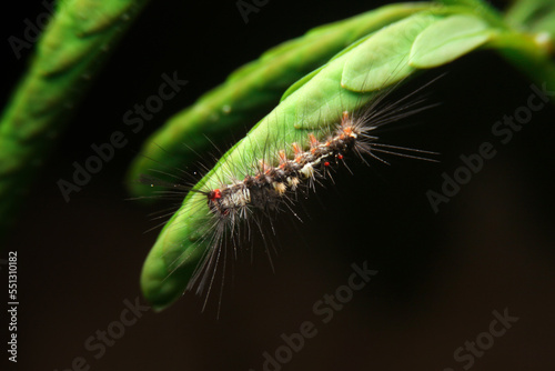 Fototapeta premium close-up vapourer moth caterpillar on leaf