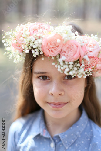 Obraz premium close-up vertical photo of a girl with a wreath on her head