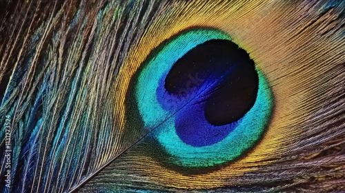Fototapeta premium Close-up vibrant peacock feather, iridescent eye.