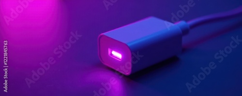 © prachaya, Fototapeta premium Close-up vibrant purple fast charger with lightning icon , energy efficiency, digital