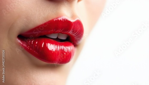 © Thaned, Obraz premium Close-up vibrant red lips, stark white backdrop, high-resolution, lipstick