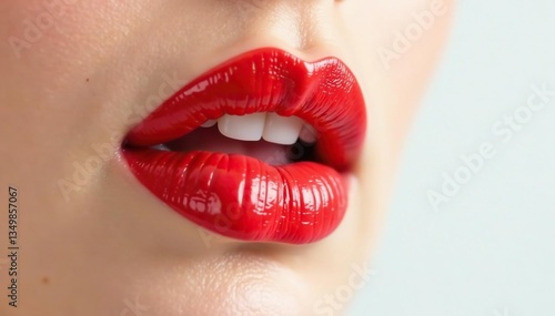 Fototapeta premium Close-up vibrant red lipstick, pristine white backdrop, glossy, close-up, lip...