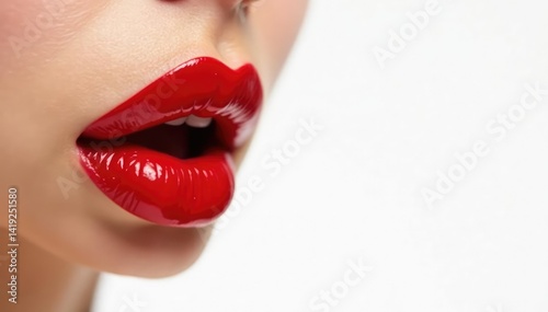 © aderag, Obraz premium Close-up vibrant red lipstick, pristine white backdrop, lips, vibrant