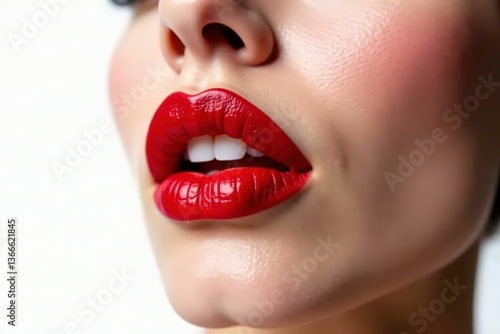 © box, Obraz premium Close-up vibrant red lipstick, stark white backdrop, beauty, makeup, red