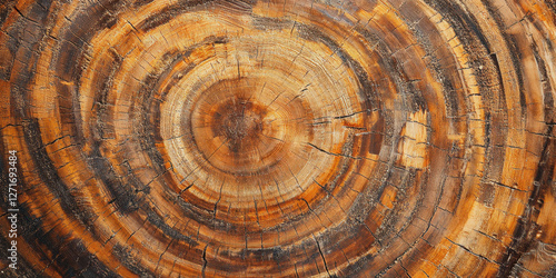 Fototapeta premium Close-up view captures the intricate patterns of cut tree rings, highlighting...