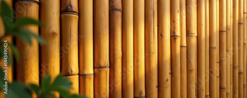 © Pat, Fototapeta premium Close-up view of a bamboo wall, showing intricate details, image, texture