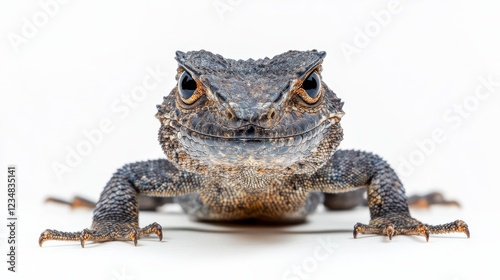© Mie, Obraz premium Close-up View of a Bearded Dragon on a Neutral Background